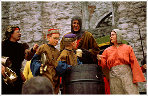 1) Tre solmärkenVad menas med tre solmärken?--- webmastern kommenterar --- Jag har alltid tänkt mig att det betyder tre dagar, någon annan betydelse har jag inte reflekterat över. Fast när jag tänker på det så skulle det förstås lika gärna kunna betyda tre timmar. Han åkte sin väg igen efter någon månad, så tre månader kan Atterdag inte gärna ha menat. Jag har just aldrig sett något i litteraturen om detta. Jag håller ögonen öppna, men skulle någon av läsarna veta bättre besked så mottages det tacksamt. 2) Dansk kilde om 1361Nej, det er helt rigtigt at Valdemar gav visbyborgerne deres fulde rettigheder tilbage i et dokument af 29.7.1361.Men i den næsten samtidige Yngre Sjællandske krønike står om invasionen: "... Derfra drager han omsider helt til Gotland, hvor han efter tre slag vinder sejren med sine mænd og tilkæmper sig hele øen næsten uden tab, mens utallige af øens mænd falder ved byen Visby, som af sig selv åbner sig for ham. Endelig vender han lykkeligt hjem til sit eget med sine folk efter at have tvunget guld, sølv, pelsværk af forskellig art og umådelig mange andre skatte ud af byen." Så en vis form for beskatning og/eller plyndring har der vel fundet sted i Visby. (Men sikkert i meget værre grad på landsbygden, hvor meget tyder på at Valdemars krigere har haft frit spil til at tage hvad de ville have.) v.h Martin Petersen martinmarius.dk --- webmastern kommenterar --- - Tack Martin! Utmärkt information! Det finns också ett brev från Visby till Lübeck strax efter det hela där Visbyborgarna säger sig ha lagt ut något för att få behålla det gods som fanns i staden orubbat. Men nu vet vi alltså genom Själlanskrönikan att han tog guld, silver, pälsverk av olika slag och omåttligt många andra skatter av Visby. Så något har borgarna tvingats betala men ingen vet hur mycket, och ingen vet heller hur omfattande röveriet på landsbygden var; folk i Fide utsåg dock Atterdag till hundens like. Poängen med denna sida är bara att det inte var brandskattningen av Visby som var det väsentliga för Atterdag, men det är detta som omtalas i hävderna och som marknadsförs genom Medeltidsveckan i Visby. Men riktigt varför Atterdag tog Gotland är svårt att få klarhet om. Dick Harrison säger, se Slaget i Mästerby 1361, att han behövde pengar och var en storrövare. Men det är svårt att veta om det stämmer, allra helst som han hade en armé av tyska legoknektar, sägs det, och därtill vet vi att flera tyska furstar var med honom - och det förefaller inte vara något bra sätt att skaffa rikedom. Vad gäller striden utanför Visby skall du få en fråga av mig som jag försöker få rätsida på (fundera på vilka konsekvenser de olika svaren bör medföra), nämligen: - Var det Atterdag eller gutarna som kom först fram till Visby? Jag påstår utan vidare att om det var gutarnas norra armé som kom fram först till Visby, och inte blev insläppta bakom murarna, så stod Visby i maskopi med Valdemar Atterdag, ty bakom murarna hade det varit svårare att slå gutarna. Om Valdemar kom fram först, varför intog han inte Visby? - Tack igen för din kommentar! v.h Bernt Enderborg 3) Mere om 1361Jeg er helt enig i at "brandskatningen" langt fra kan have fundet sted som Hellquist malede den 500 år senere, selvom Valdemar "den onde" (som han vist faktisk kaldtes også i Danmark) nok tog rigdomme med sig.Fundene (især teksten om at fare frem som hunde - med ild og brand til følge) i Fide kirke og nedgravede møntskatte tyder jo på at den voldsomste plyndring fandt sted på sydøen. Var Syd-Gotland en del af krigernes "løn" for at tage med på togtet? Der er virkelig meget vi ikke ved om slagets årsager: Hvordan kommunikerede visbyborgerne med gutarne? Hvordan kommunikerede visbyborgerne med Valdemar inden og efter slaget? Vi har ingen aning om hvilke aftaler der har været lavet. Kommunikerede gutarne med Valdemar? Desuden: Hvordan var magtforholdene og kommunikationen INDE i Visby. (Der kan jo have været folk der gerne ville åbne portene, folk der havde familie på landsbygden ...) For mig er den mest spændende afbildning af slaget den man heldigvis kan se i stort format på Almedalens bibliotek: Gobelin'en "Vi på muren". Hvordan KUNNE borgerne bare se passivt til? Hvad var der gået forud? --- webmastern kommenterar --- Jag instämmer med ovanstående, dvs att vi vet för lite. Men jag tycker att det är uppseendeväckande att man sen liten fått lära sig att vad Valdemar Atterdag gjorde var att brandskatta Visby - även om det måhända bara är dålig marknadsföring, och därtill gjorde Valdemar säkert detta - trots att källorna säger att han intog Gotland. Och detta kan man tyda som att brandskattningen av Visby egentligen bara var en bisak. Det är jätteintressant att tala med en dansk om detta, ty liksom all annan historia så finns andra perspektiv att få del av än de vi har i Sverige och på Gotland. Vi hoppas att Martin Pedersen och andra danskar också fortsättningsvis har vänligheten att kommentera våra sidor. Jag kommer att göra en sida om gobelängen som hänger i Almedalsbiblioteket och en länk till den sidan kommer att läggas till här. Här är nu den! - Tack för din kommentar Martin! v.h Bernt Enderborg Vill du fråga om, kommentera eller diskutera något på denna sida - klicka här. |