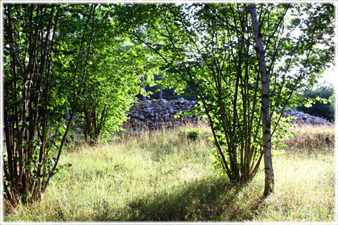 Hägroir, Högrör stenröse i SandaGotland | Sanda socken | Stenrösen | Utskrift | Mobilsida ![]() Det finns troll i trakternaPå informationsskylten står det Högrör men det förefaller som att såväl Erik Olsson (Korumpianen) som den sandabo jag frågade om vägen till Hägroir kallar gravfältet med ett stort stenröse för just jämt Hägroir. ![]() Det stora röset som är 30-33 meter i diameter och 2,5-3,2 meter högt ligger lite skymt bland buskarna, men man ser det från grusvägen om man vet var; det står dock en skylt längs vägkanten om du kommer uppifrån Sanda där du svängt ner vid vägskylten Nystugu. I förbigående skall vi också säga att det ligger ett stort gravfält uppe i socknen också, alldeles bredvid bygdegården. ![]() Ovanpå det stora röset ser man den karaktäristiska kratern, se översikten, och det är nog inte enbart hjältar som har försökt hitta skatten ty de stora bronsåldersrösena är byggnader, se Kauparve röse i Lärbro. Det är förresten inte det enklaste att komma åt skatter, se hur det gick för bonden i Rute på sidan om Drakskatten. ![]() Platsen är ett gravfält och har mer sevärdheter än det stora röset, som byggdes i början av bronsåldern (röset är minst 3.500 år, kanske ett halvt millennium äldre än Trojanska kriget). Det finns fem runda stensättningar, en rest sten och en möjlig skeppssättning. ![]() Erik Olsson berättar i boken "Mänskar u pasjasar", ISBN 91-85716-58-8, Uddevalla 1990, att det var farligt att gå vid Hägroir nattetid och att hans mormor berättade att "trulli skramledä mä pängar äi en stäurar kopparkittel um netarna". Nu har vi varnat dig! Om du inte tror att troll finns så se sidorna Barrskog (första bilden) och Vandringsleden i Ardre (sjätte bilden) - och det är bara dom små trollen. /text och foto Bernt Enderborg ![]() Guteknappen - platsguideGenom att trycka på en knapp på mobilen med gps får du gudning. Står du t ex nära en kyrka får du information om kyrkan och en lista på vad som finns i närheten.Platsguiden fungerar förstås bara när du är på Gotland. Mobilanpassat finns på Visit Hemse - klicka på hjärtanet. ![]() VägbeskrivningSanda socken är gulmarkerad på kartan, klicka och socknen med utflyktsmål visas. Mer infoHär finns mer om Stenrösen.I närheten - fågelvägenBildstenBildstenen i Sanda, 4,5 kmEvenemangKlinte marknad, 4,5 kmFiskelägeBibos fiskeläge, 5,1 kmValbyte fiskeläge, 3,1 km Västergarn fiskeläge, 3,3 km FornborgarVästergarnsvallen, 2,9 kmFöretagStrandvägens pensionat, 3,0 kmGravfältDjaurmänni, djurmännen, 1,1 kmEtt gravfält i Sanda, 1,2 km HamnarKlintehamn, 4,2 kmVästergarn hamn, 3,3 km HistoriaEtt vendeltida skeppsvarv vid Paviken, 4,5 kmFiskerännorna i Västergarn, 3,5 km Krampmacken, 3,3 km Sjörövare på Vivesholm, 3,5 km Vikingarnas Västergarn, 3,5 km KastalerVästergarn kastal, 3,4 kmKuriosaVikingatida hamn i Västergarn, 3,6 kmÖstra porten på Landeskron, 3,3 km KyrkaKoviks kapell, 3,0 kmSanda kyrka, 1,7 km Västergarn kyrka, 3,0 km KåseriEtt blommande land, 3,4 kmHonung på Klinte marknad, 4,7 km Kippers i Klintehamn, 4,2 km Såg du allt? Säkert., 4,5 km Magiska GotlandAndetappare, 3,3 kmEn annorlunda ö, 3,1 km En kvast vid stranden, 3,9 km Solnedgången i Klinte, 4,8 km Viking konkret, 4,1 km MuseerLars Gullin-museet i Sanda, 1,6 kmSmaklösa museum, 3,1 km Tjuls järnvägsstation, 4,4 km MålningarDaniel och Habackuk, 3,0 kmS:t Nicolaus i Sanda, 1,7 km S:ta Clara av Assisi, 1,7 km Själavägningen i Sanda, 1,7 km Vem ror, 4,5 km NaturreservatPaviken, 4,3 kmPlatserEn kvarn i Västergarn, 3,1 kmPetarve vattensåg, 3,4 km Sanda bygdegård, 1,3 km Sandaparken, 1,4 km SkeppssättningarRannarve, 3,8 kmSkulpturDom har koll på dig, 1,7 kmGuldgänget i Sanda, 1,7 km Jungfru Maria spinner purpurull, 1,7 km Matteus - änglamänniskan, 1,7 km StenrösenHägroir, Högrör stenröse i Sanda, 0 mRannarve, 3,7 km Stenröse i Västerbykvia, Djaurgatu, 1,0 km StränderBarlastkajen, Balarn, Balan, 4,7 kmKlintehamn hamnbad, 4,2 km Västergarn strand, 3,4 km ÄngenMästerby änge, 5,5 kmÖarKronholmen, 4,4 kmStugor västra Gotland3 bäddar - Blåhammar Uppe 3 bäddar - Lillstugan 4 bäddar - Skogs 4 bäddar - Lilla huset Kovik 4 bäddar - Kroks Tofta, Kastanjegården 4 bäddar - Blåhammar S 4 bäddar - Röda stugan 5 bäddar - Grytet 5 bäddar - Lyan 5 bäddar - Nästet 5 bäddar - Blåhammar N 5 bäddar - Ingenjörsvillan 6 bäddar - Strandänget Kovik 10 bäddar - Matsalen