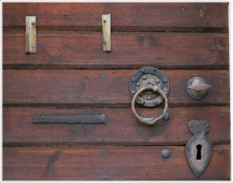 Bilden visar en liten bit av långhusets dörr på Alskogs kyrka, som är medeltida, liksom själva portalen, förra hälften av 1200-talet säger Erland Lagerlöf i Sveriges kyrkor, men träet i dörren har bytts ut ett antal gånger; portalen är en märkvärdighet bl a för Globus.