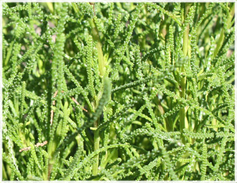 Men det är inte bara gotländskt, alla de vanliga kryddorna som timjan, basilika, koriander, chili osv. finns, men också Olivört som på bilden ovan, som smakar tallbar och olivolja, och många andra växter; jag får hela tiden smakprov av Tina när hon rensar, pekar och berättar om saker vars namn jag redan glömt (det är mycket).