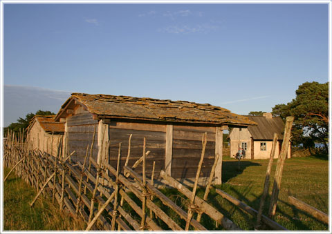 Koviks fiskerimuseum Fiskeläge, Sanda socken ![]() Vid Kovik, säger informationsskylten (vi säger Korumpu), har man försökt samla och bevara den gamla fiske- och strandkulturen på Gotland. Kring Gotlands kust har det funnits omkring 150 större eller mindre fiskelägen och till Kovik har man flyttat gamla strandbodar. ![]() Det är ett gemytligt ställe Kovik, lugnet infinner sig i magen och gamla tider ligger på lur i varje skrymsle. Men när jag var barn och bodde hos min kusin så var vi och fiskade vid Kovik, fast så sa vi aldrig, vi åkte till Korumpu. Solnedgången på ett ställe som Kovik är magnifik och den gamla gotländska kulturen lindar in alltsammans i en tavla av skönhet för den som gitter kika efter. ![]() På bilden tagen från nordöst syns bl a en lysstång, vars användning framgår av namnet. Bänken i förgrunden torde vara ett alldeles förträffligt ställe att avsitta solnedgången på. Det är strand och hav som gäller, det luktar, det hörs och havet vilar ögonen som vanligt. ![]() Bredvid en vacker bod låg en uttjänad båt lit de parade. Det är svårt att förklara havet för folk som inte är vana vid det. Men det är liksom sorg och glädje, lugn och storm och liv och död på en och samma gång. Havet kan ge en lugn puls med sina långa andetag men det kan också få bröstet att storma då gässen rider vågorna och vinden känns på kinderna. Kovik är ett sånt ställe som kan ge amatörer in liten glimt av vad det egentligen handlar om, en sån som jag till exempel. ![]() En och annan bod har det ovanligt tilltalande taket gjort av stora flisor kalksten. Får man flisorna på rätt plats så regnar det f-n i mig inte in. Det kan väl nämnas att en och annan bod är byggda helt utan spik, bulhus kallas sånt.Framför Snäckhuse låg Krampmacken tjärsmord alldeles för dagen. Krampmacken är ett skepp byggt så som gammalt och fornt haver varit samt omkringseglat på de gamla farlederna mot Miklagard. Jag tror inte att man tog sig hela vägen till Konstantinopel = Miklagard. Men till Holmgard kom de säkert (Novgorod), ty där låg ju fordom Gutagard. Vi får kolla upp det där lite bättre.Bilden på en av stävarna har jag lagt omkull så att Du kan läsa: Krampmacken, som det inte står utan Krampmak som det står - folk som begriper sig på sånt där säger att det är ett alldeles förträffligt namn på denna båt. /text och foto Bernt Enderborg Vägbeskrivning Ta väg 140 rakt söderut i två mil ungefär. |