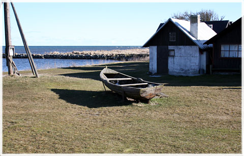 Djaupdöi fiskeläge Fiskeläge, När socken ![]() Också Djaupdöi (Djaupdy på svenska skyltar och kartor) ligger lättåtkomligt på Hammaren i När, dvs den udde som sticker ut en bit i sjön mellan Lausvik och Austaveik. ![]() Djaupdöi har den kraftigaste hamnanläggningen av de tre fiskelägena på udden, dvs Nabbu, Gardbostrand och Djaupdöi, och det beror kanhända på att fisket blomstrade upp en aning under Andra världskriget. Albert Eskeröd säger i sin bok "Gotländska stränder", Rydahls Boktryckeri AB, Stockholm 1962, på sidan 209 att år 1940 fanns det 6 yrkesfiskare, 7 binäringsfiskare, 6 däckade motorbåtar och 240 laxnät. Och på sidan om När, som är ett sockennamn, sägs att det har funnits ett salteri för export av strömming till Tyskland. ![]() Mitt i fiskeläget står en uttjänad båt och längtar vågor. Och man kan måhända hålla med Eskeröd när han i ovannämnda bok på sidan 205 säger: "De gamla strandbruken håller således på att försvinna, här som överallt. De flesta möter en långsam död i skönhet eller invaderas och förändras till oigenkännlighet av sommarfolk - av upplänningar eller stadsbor, som egentligen inte alls vet, vad ett gotländskt strandbruk är." ![]() Bilden är tagen från infarten söderifrån, där man inte får köra in med bil utan det går en liten väg alldeles bakom fiskeläget om du vill vidare norrut på Hammaren. ![]() Ett foto från sydöst som visar hur bodarna ligger i sin klunga strax ovanför hamnen, vars inlopp är omkring 20 meter och vid pass 100 meter vid stranden, där tre träbryggor finns att förtöja båtarna. ![]() Bland plastleksakerna mellan bodarna ser man här och var också påminnelser från gångna tider, inte särskilt mycket men i alla fall. ![]() Djaupdöi är givetvis vackert, en skönhet, men vi rekommenderar i alla fall att du stannar till vid Gardbostrand eller Nabbu om du vill njuta kaffekorgen eller kanhända känna lite mera av äldre tider. ÖverkursNamnet på fiskeläget "Djaupdöi" stavas på vägskyltar "Djaupdy" vilket är en underlig blandning, men Språk- och fornminnesinstitutet (SOFI) säger att det ibland tar hänsyn till dialekter men i förekommande fall bara för den första delen av ordet, se HelaGotland. Och det står ju alldeles i överensstämmelse med att svenskarna (fastlänningar) sen 1600-talet och Hakvin Spegels dagar vill förringa vår kultur och trycka in den påhittade svenska historien i skallen på ungarna, dvs om Gustav Vasa, hjältekonungar och sånt.Missförstå mig inte nu, gutar är svenskar och vi älskar Sverige lika mycket som alla andra, men vi kan utan vidare påstå att det är fastlänningar som talar dialekt, allra helst som vårt språk faktiskt har en längre historia och därtill är det första skriftsystemet för hela den germanska stammen från Gotland, se Underbara Gotland - språket. Men sådana argument är väl egentligen inte något särskilt att ta hänsyn till, men man kan gott undra över varför också våra vackra ortnamn skall förvrängas. Kan det tänkas att någon lättare hittar till Djaupdy än Djaupdöi? Men det finns förmildrande omständigheter, ty det här med diftonger är konstiga grejer, se Diftonger, gutamål, gotländska, där Djaupdy används som exempel. Nåja. De argument från myndigheterna som framförs i artikeln från Hela Gotland är helt enkelt fel och lätta att bemöta, däremot vet jag förstås inte helt säkert att reportern förstod allting rätt. Som rubrik på denna sida har vi som synes satt det korrekta namnet men om någon söker på "Djaupdy" så visas en länk till denna sida. /text och foto Bernt Enderborg |