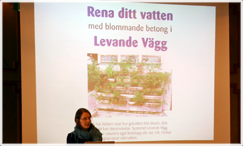 Vattendagen 2015 Artiklar, Visby socken ![]() Vatten är inte bara vatten, vilket som helst, utan ett livsmedel. Vi har det till allting: dricker, spolar, badar, bakar, speglar, och vi skriver storslagna poem vid strandkanten. ![]() Du begår ett allvarligt misstag om du tror att livet uppstod i regnvatten, eller vatten renat med omvänd osmos, dvs havsvatten som renats på så sätt att ånga pressas genom membran som bara släpper igenom vattenmolekyler. Fyller du ett badkar med på detta vis renat havsvatten och släpper i en fisk, så dör den. Så rent är det! Inga medicinrester, inga gifter, föroreningar eller mineraler. Och en död fisk. - Det skall du dricka. - ??? - Jo, det skall du! ![]() Clarion hotell hade välvilligt ställt Spegelsalen till förfogande och omkring 150 personer hade samlats, de kom och gick efter eget huvud, för att höra vad som var å färde. Det är i och för sig märkligt att det inte var 60.000 där - är det nåt du inte har fattat? - ty det är en utomordentligt viktigt fråga och föreläsarna hade saker att säga, vi fick till och med en liten snutt världspremiär på en film. ![]() Ola inledde med att förklara vad han hade reagerat på och anledningen till att han anordnat det hela. Först drog han av lite skämt, kommunstyrelsens ordförande Björn Jansson var uppmärksam: ![]() Nu är det ju inte hans fel allt det där men han har en utomordentlig chans att åstadkomma saker, och Ola redogjorde för skrivningar i olika kommunala plandokument hit och dit och visade att de minst sagt konkurrerar med varann men att skrivningen mot vatten renat med omvänd osmos, som fiskar dör av, numer skrivs klart och tydligt. - Jo, det skall du! ![]() Vi fick två goda exempel på hur man i stället bör göra, det här är det ena. Lillis Svärd i Gammelgarn, som dessvärre har gårt bort, gjorde tillsammans med sin fru Sonia Johansson, bilden, en levande vägg som renar bl a deras gråvatten. Det är miniatyrskala men Sonia talade också om att det har gjorts forskning på det där och att det nere i Europa funderas på hur man skall kunna implementera detta i mindre städer. Hon redogjorde också för paragrafridande tjänstemän. Usch! - Det går att med ganska enkla medel och goda idéer rena sitt vatten själv. ![]() Folke Rydén jobbar tillsammans med Mattias Klum i ett tioårigt projekt som går ut på att dokumentera Östersjön. Vi fick se några snuttar från tidigare filmer, som har visats på SVT och runt om i världen (de har vunnit en massa priser), men också lite av en kommande film, världspremiär alltså - man tackar! - och det är tråkiga saker de visar fram. Men det går att förändra! ![]() En del av ett konstverk som man kunde vinna om man köpte en lott. Folke visade exempel på mänsklig dumhet men talade om att det går att ändra på saker och ting, de hade rent av lyckats med ett och annat. Han talade också om nya kemikalier, ty ddt och pcb är allbekanta, som åtgärdats, men vet vi egentligen vad som i nutiden finns i vårt avlopp? Och svaret är förstås att vi inte har en aning, trots att vi vet ganska mycket och har ordning på ett tämligen begränsat antal, men bara lugn: alla kemikalier kommer med tiden att finnas i sjön. - Jo, det skall du göra. Barnen också. ![]() Eva Frölander visade ett projekt från Gammelgarn där man återställt några små våtmarker på olika höjdnivåer, som fyller på varann, och skapat små själar till vattenspeglar i markerna. Nu har man vatten, det hade man inte förut under högsommaren, och därtill hällde man ett regnigt år bort 17 gånger mer vatten än vad kommunen tvingas köra med lastbilar till Katthammarsvik på somrarna. Jag skall ta och kontakta Eva senare i vår och skriva lite om det där; jag vill för övrigt också minnas att de har gjort en sjö i Kräklingbo. Information kommer. Peter Fagerlund, en arkeolog jag känner, har blivit gramse på kommunen och frågat efter siffror och kunskaper. Han säger så här: "Jag kan efter undersökning garantera att Regionen inte kan väga det ekonomiska i att avsalta mot idag. De vet inte vad vatten idag kostar att ta från grundvatten. Utan att ta reda på det först så borde de inte kunna fundera på avsaltning ens." Och så här säger han också: "Jag har fått ut alla underlag de hade och det politikerna fick inför beslut. De fick helt enkelt tre nivåer av taxa att välja på, ingen frågade efter vad det egentligen kostar. Jag ställde alltså frågan till ansvariga vad exempelvis en kubik kostar att ta upp, göra klar och få ut till kund. De har ingen aning. Lagen säger att taxan skall vägas mot faktisk kostnad över tid men de vet inte vad eller varför det kostar idag. Plötsligt ser det bara ut som att det blir billigare med havsvatten." ![]() Olika konstnärer hade skänkt ett verk till Vattendagen, som lottade ut dem. Jag köpte en lott, men dessvärre vinner jag aldrig på lotterier. En tröja av Lotta Ingelse. ![]() Sen talade Ingegerd Rosborg, KTH i Stockholm som har forskat inom dricksvattenmineraler och hälsa i 20 år. - Läs vad det står på bilden ovan! Det är vattenrening med omvänd osmos som kommunen tänker införa för en hisklig massa miljoner. De planerar att blanda detta renade vatten, som en fisk dör av inom 24 timmar, med grundvatten och hoppas på så sätt få ett hyggligt vatten, som fiskar inte dör av. Hon sa att det faktiskt var en anledning att flytta till Gotland på grund av vårt vatten, dvs det vatten som inte renats med omvänd osmos som är hälsovådligt vid långvarigt bruk. Hon sa också att det för nuvarande inte finns tillfredsställande metoder att tillsätta mineraler till renat vatten. Jag skriver det en gång till förresten: Hon sa också att det för nuvarande inte finns tillfredsställande metoder att tillsätta mineraler till renat vatten. Här kan du höra henne i en kort intervju på Radio Gotland. - Och drick inte sånt där bordsvatten på flaska, sa h