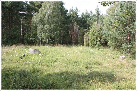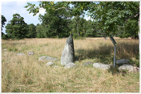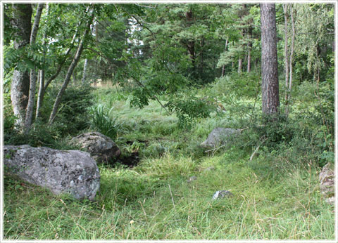 Natur- och kulturstigen vid Stavgard Utflykt, Burs socken ![]() Bilden ovan visar hur det ser ut om man vänder sig om och tar ett kort för att visa de stainvastar (stensträngar) som finns överallt i trakterna, till vänster på kortet, medan den väg man följer ett litet stycke både dit och tillbaka igen syns till höger. Stigen är ungefär tre kilometer lång, så det är ett stycke, men ett fantastiskt stycke. Du kommer att få se underbar natur, fantasieggande fornlämningar och när man går på de utgamla vägarna så rör man sig i tiderna från äldre järnåldern fram till vikingarna. ![]() När du går alldeles i början av stigen kommer du att utåt havet se hur många stainvastar som helst. Också i skogen löper de kors och tvärs, och hur många fornlämningar det egentligen finns i trakterna tror jag inte att någon vet, massvis, och det är därför lätt att få en uppfattning om hur outtröttligt folk har arbetat och arbetat, av arbetets glädje och av en alla gutar inneboende viljestarkhet om att vi bor på världens bästa ö. Det kan vara svårt att förstå, men det är frihet dessa idoga stensläpare har sysslat med, inte bara brödföda. Och spåren våra förfäderna lämnat efter sig är många, enkla att förstå och hälsar oss i framtiden att arbete befrämjar hälsa och välstånd. Stigen har sju stationer: Station 1Bilden ovan visar en liten bit av skogen alldeles innanför Station 1, som redogör för slipskårestenar, dem vi kallar svärdslipningsstenar. Jag lyckades inte hitta den slipskåresten som ligger cirka 60 meter från skylten, så jag föreslår att också du struntar i att leta efter den ty du kommer att få se andra som är lättare att hitta. Men ta till dig informationen på skylten och följ instruktionerna för den fortsatta vandringen.Station 2 - Stavars skatt![]() Station 2 visar nästan rätta platsen där man fann vad som kallas Stavars skatt (men det var nog en "vanlig" silverskatt i stället, nästan 1500 arabiska silvermynt från 900-talet, för jag vill minnas av sagorna att Stavars skatt skulle vara mycket större). Men först skall vi uppmärksamma de slipskårestenar som ligger strax efter stättan (stetu) i Stavars änge. I stället för att gå direkt till bautastenen, som kallas sockertopp för de liknar visst en sån, se Wanges, så gå i en liten båge inåt i änget till bautastenen ty då ser du bl a denna svärdslipningssten på marken: ![]() På informationsskylten vid station 1 redogör Tore Gannholm för att man med en maskin kunde tänkas ha slipat någonting i dessa skåror. De flesta upplever nog dessa teorier lite märkliga, men det beror på att de inte har sett denna sten. Oftast är sliprännorna mycket grundare, se t ex Så gjordes slipskårorna (här finns mer om dessa stenar), men denna sten vid Stavgard har mycket djupare skåror och de har näppeligen gjorts för hand. Det är alltså ingalunda endast stenyxor som under stenåldern har framslipats i dessa skåror, de har också tillkommit längre fram i historien och inte endast gjorts för hand. Station 3 - Stavars brye![]() Stavars brye hålls för en offerbrye (en brye eller brya är vanligen ett vattenhål för djuren). Den är stenlagd runtom, i mitten finns en sten och på bilden ovan ser du hur en rad av stenar leder ut till bryan (vi säger inte bryan eller brye egentligen utan nog bröie eller bröiu om vi vet vilken som menas, se Brya där en bild till av Stavars brya finns). På åkern strax brevid bautastenen och Stavars brye hittades under en större arkeologisk utgrävning 1983-84 spåren av sex större och mindre hus. Vidare hittades en stor mängd djurben, keramik, båtspikar, mynt och smycken samt spår av handel, skeppsbyggeri, smide, guldsmedskonst och trähantverk. Det har alltså bott handelsmän i environgerna i nästan 1.000 år, se också Stavars hus. På informationsskylten vid bröiu finns lite information och lite trams, men följ dock instruktionerna för den fortsatta vandringen. Station 4 - Vikingarnas hamn![]() Strax står du vid den nutida naturliga bevattningsdammen men där det på vikingatiden låg en hamn. Och som vanligt när det gäller Gotland är allting konkret. Det är inte uppstaplat, iordningställt, tillrättalagt, utan du känner att här gick dom, här bodde dom och bl a här kom skeppen hem med silver efter utfärder som kunde ta upp till fyra år. Tänk dig själv, efter fyra år slår skeppet i strandkanten vid ditt hem, dom älskade. Du har rott, seglat, svultit, frusit och svettats mer än samtliga professorer i teoretiskt strunt med sina hela bibliotek av böcker med förklaringsmodeller, silverimport och transitohandel. Dina barn, din hustrus kärleksfulla händer och den gamle väderbitne gammelgubben, "O' far" som vi säger, som har fiskat och fiskat och fiskat. - Silverimport, transitohandel - vad är det för nåt? De borde i stället skriva om skräckdrömmar, oro, längtan och hulkande glädjegråt. Station 5 - Snäckhus![]() Man fortsätter runt bevattningsdammen och kommer snart upp på gamla strandvallar där utgamla vägar går. Här är riktigt skönt att promenera. Strax står man vid platsen för Snäckhuset, som är 30 meter långt och 8 meter brett. En snäcka var ett krigsskepp, se Gutasagan och Ledung. På informationsskylten redogörs för att gutarna nog hade mindre skepp än de långskepp norrmän använde och några andra fantasier. Vad gäller gutar i västervåg, se Detalj från ett vikingaskepp, Gutniska stenkors på Isle of Man och som vanligt gäller att mängden engelska mynt på Gotland är oproportionerligt stort jämfört med övriga riket, cirka 60%. På informationsskylten visas också en bild av Krampmacken i jämförelse med ett långskepp. Men Krampmacken är nu en båt som hittades i Tingstäde träsk, en liten insjö, och sitt namn har den fått av att den liknar en tångräka, se krampmack. Snäckhuset är 30 meter långt, Krampmacken 10. Jag finner informatio