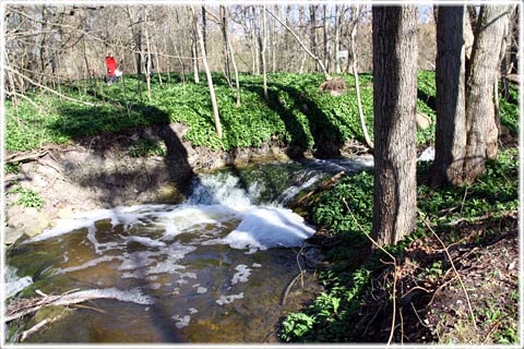 ![]() Det är höga träd bredvid parkens stigar, nästan som i en skånsk bokskog trots att träden är mera ek och klibbal; det kallas rent av trädpark ibland. ![]() Höga träd och forsande vatten, och är du där i vårens tid så kommer du att veta hur ramslök luktar (bilderna är från den 19/4-2015). ![]() Vattnet kommer rakt ut ur berget hela vägen från Martebo myr; vi säger i vår utdikade tid myr medan man före slutet av 1800-talet sa Martebo träsk (insjö). ![]() Detta är Lummelundagrottans naturliga mynning; vattnet försvinner i slukhålen i Martebo någon mil uppåt land och dyker upp här. Linné skrev: "5/4 väg från staden ankommo vi till Öfvestekvarn i Lummelunda socken, där masugn och hammare fordom stått. Vi betraktade här den underliga strömmen, som tager sin begynnelse vid Martebo träsk och därifrån går - väg under berg och dalar, kommandes ut här där lantborgen mot västra sidan är avbruten, vid dess rot liksom ur ett litet valv av två famnars bredd, 1 famns höjd. Under kalkberget, där strömmen strax formerar ett överfall från kvarn, såg stamp så högt att det är bland de ansenligaste i Sverige. Här vore tillfälle anlägga långt högviktigare saker, om Gotlands Manufakturer någonsin uppkommo." Nästan två meter hög och fyra meter bred. En famn = 1,7784 meter. ![]() Fabrikörerna gjorde förstås detta. Vattnet kommer ur klippan strax bakom fallet. ![]() Vattnet rinner genom den sköna engelska bruksparken. Det gröna på marken är ramslök; plocka nu inte allt där, det finns gott om ställen i Lummelunda, och annorstädes, som luktar likadant. ![]() Här ser du lite av känslan i parken, höga trän och trampade stigar. Skönt! ![]() Även om det inte är några riktiga våldsamheter, kan det vara läge att hålla ögonen på ungarna. Ta med dem ner till stranden. ![]() Efter några hundra meter uppifrån grottan letar sig bäcken ut i havets stora blå. Vi var och tog bilder före lövsprickningen för att du skall få en känsla av parkens höghet - luft och rymd, som i en skånsk bokskog. Du behöver inte besöka grottan utan parken räcker gott som ett eget utflyktsmål: en picnic i det gröna, kanske frukost med rött vin och pimpinella eller en enkel kärleksmåltid med din sköna (parken ligger på solnedgångssidan och det är bara att knalla ner till stranden), men lite luft och natur och skutt för ungarna duger så bra så. /text och foto Bernt Enderborg |