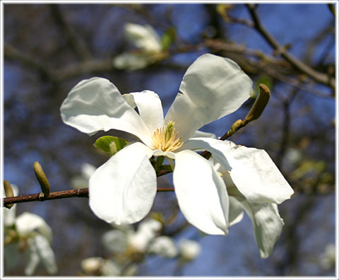 Magnolian blommar 30/4-2008![]() Precis nu blommar Magnolian bländvit i Botaniska trädgården i Visby. Man får hoppas att det finns många såna trän i Sverige - man blir lite starkare av dem.